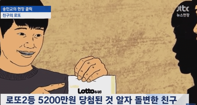한 남성이 2등에 당첨된 로또 용지를 보고 있던 중